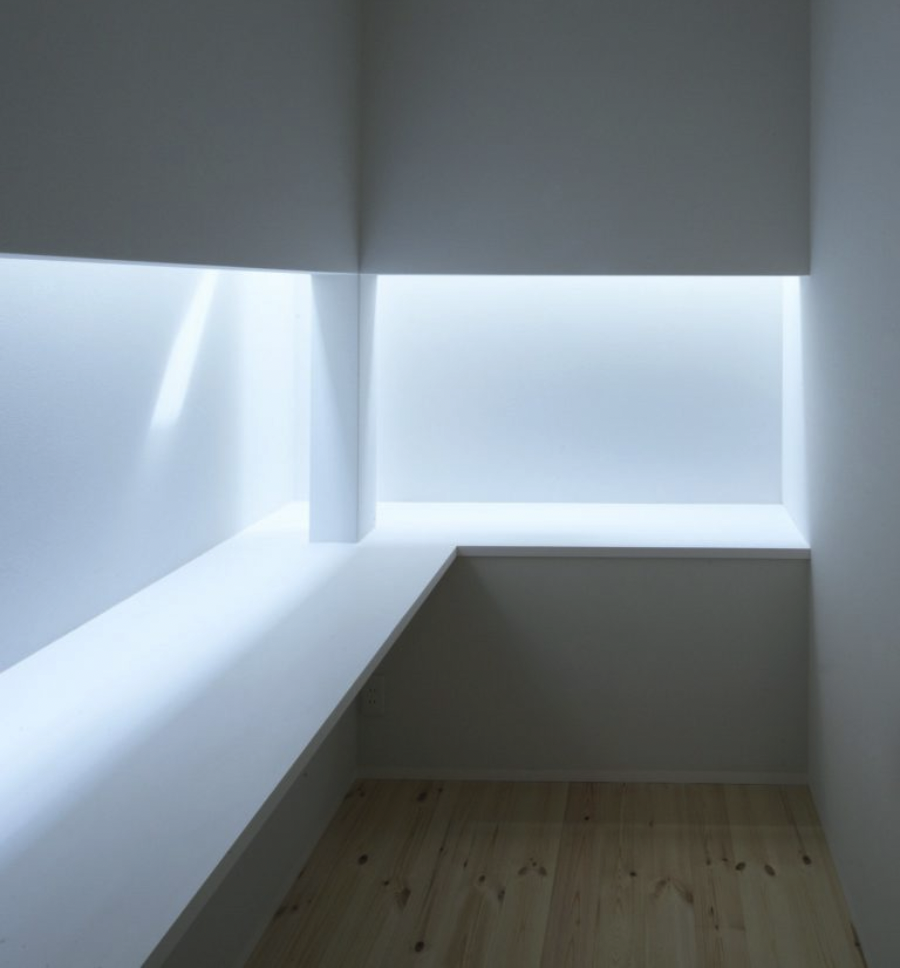 自然光を用いた演出によって、デスクが美しく浮かび上がり、非日常な空間に仕上がりました。