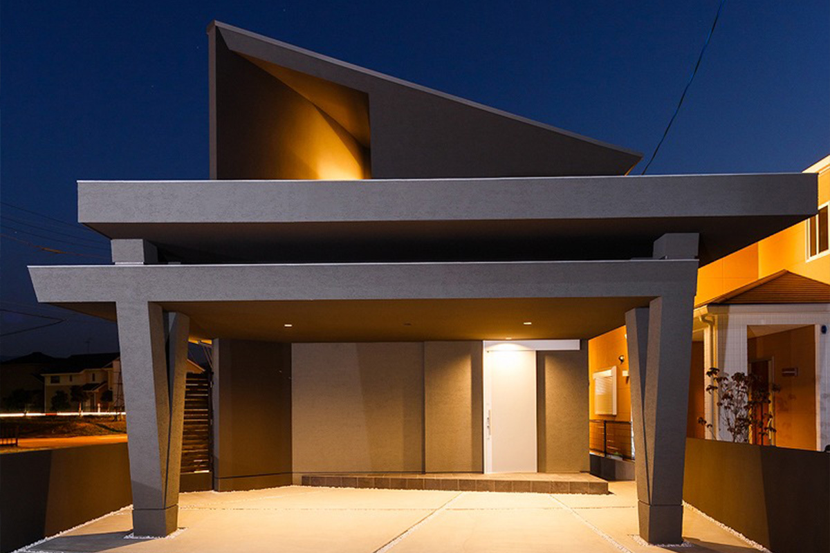 道路側に対して閉じつつも、内側へと開く構成により、プライバシーと開放感を両立した住まいを計画しました。