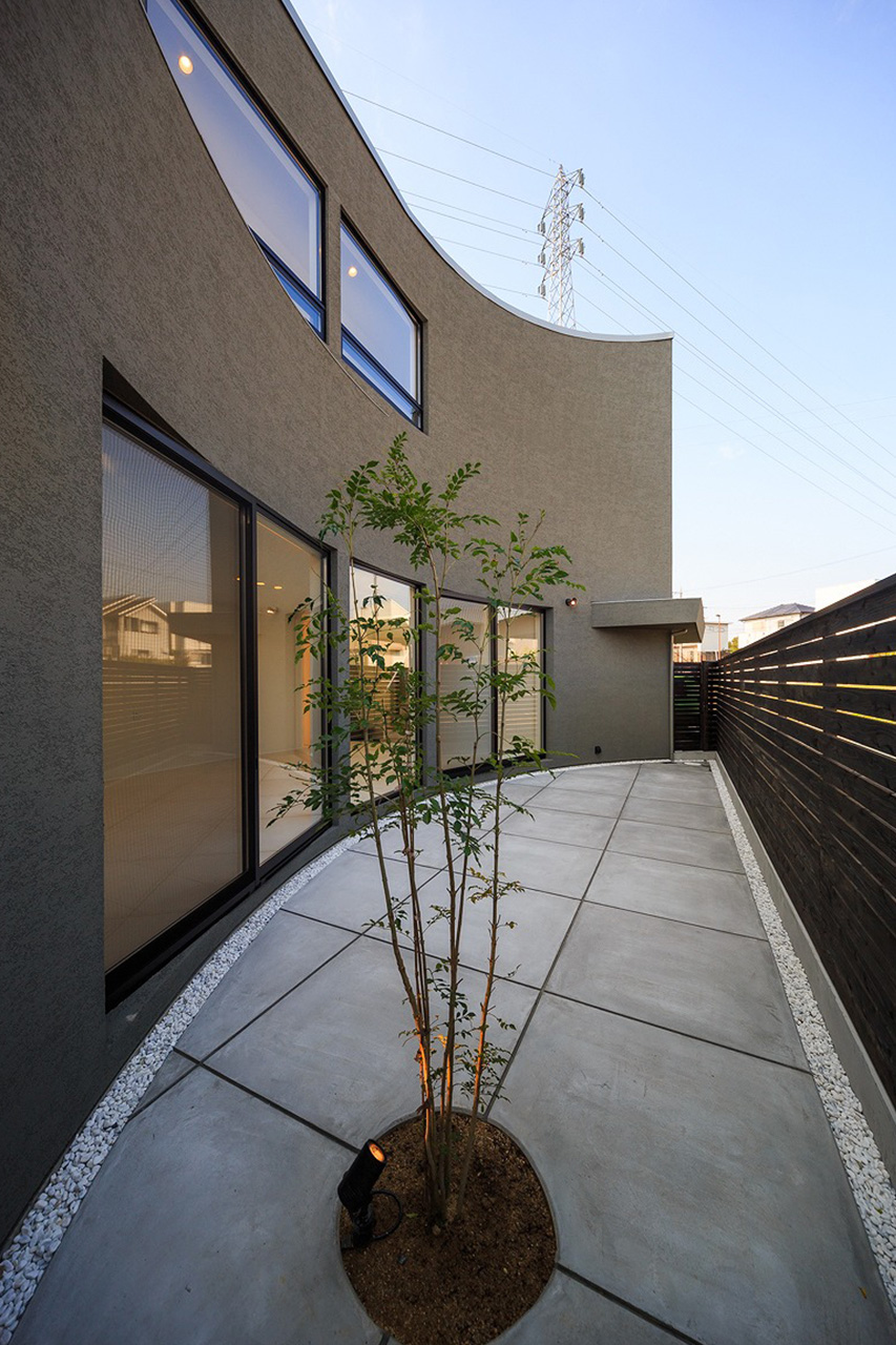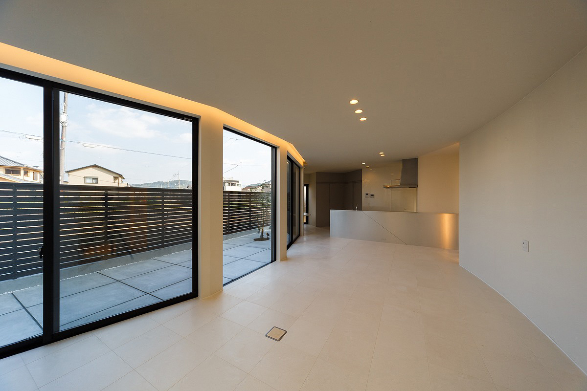 LDKに寄り添う、やわらかな曲線を描くR壁。