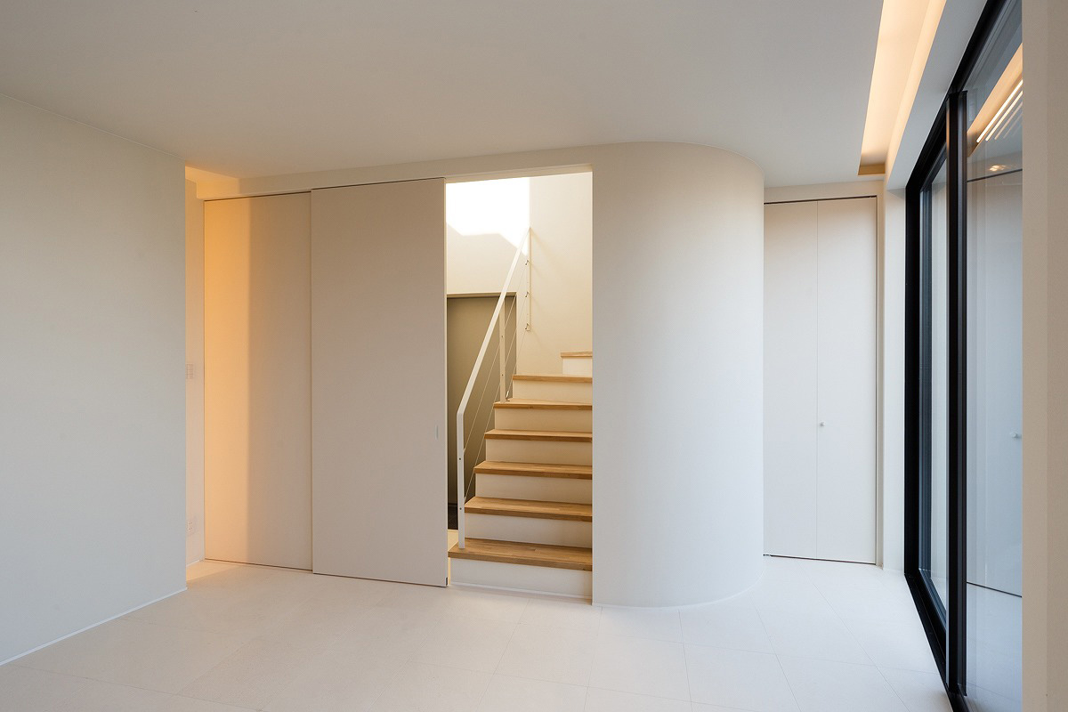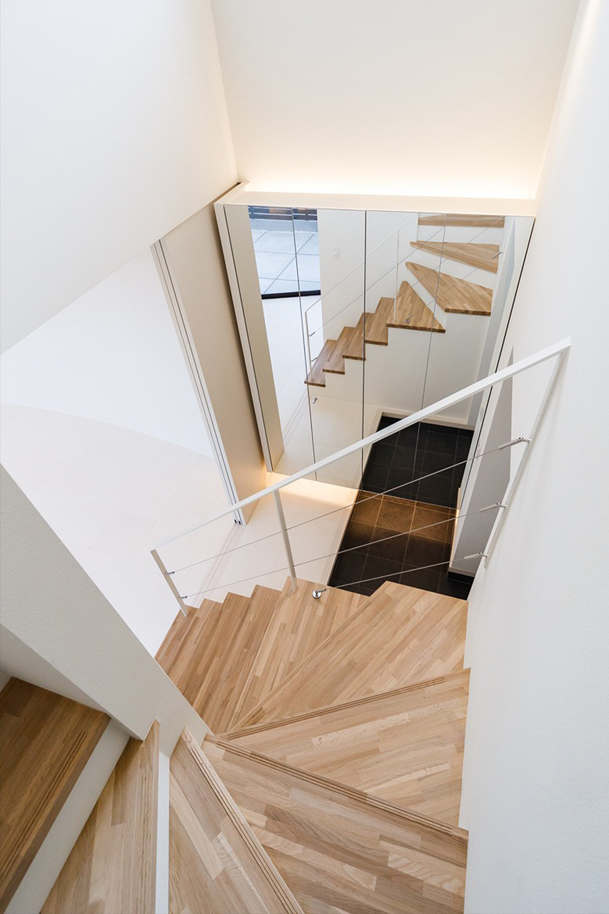 上下階をゆるやかにつなぐ、光あふれる階段空間。