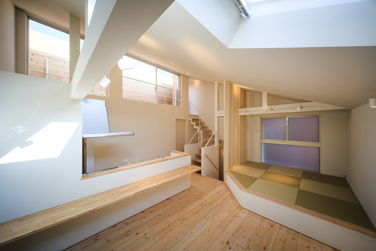 住まいの中心となるLDKには、上部から光を取り込む設計を採用。