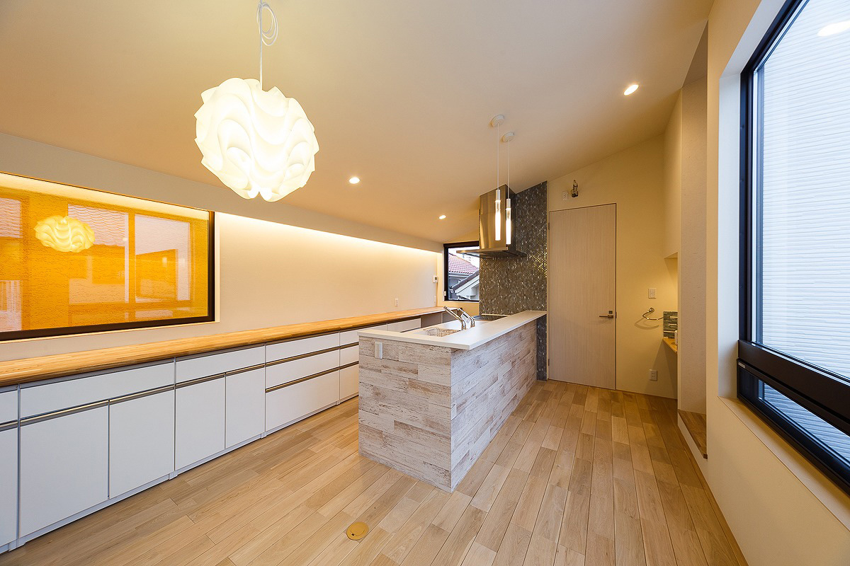 限られた敷地条件の中でも、光を効果的に取り込む工夫を随所に施すことで、住まい全体に明るさと開放感をもたらしました。