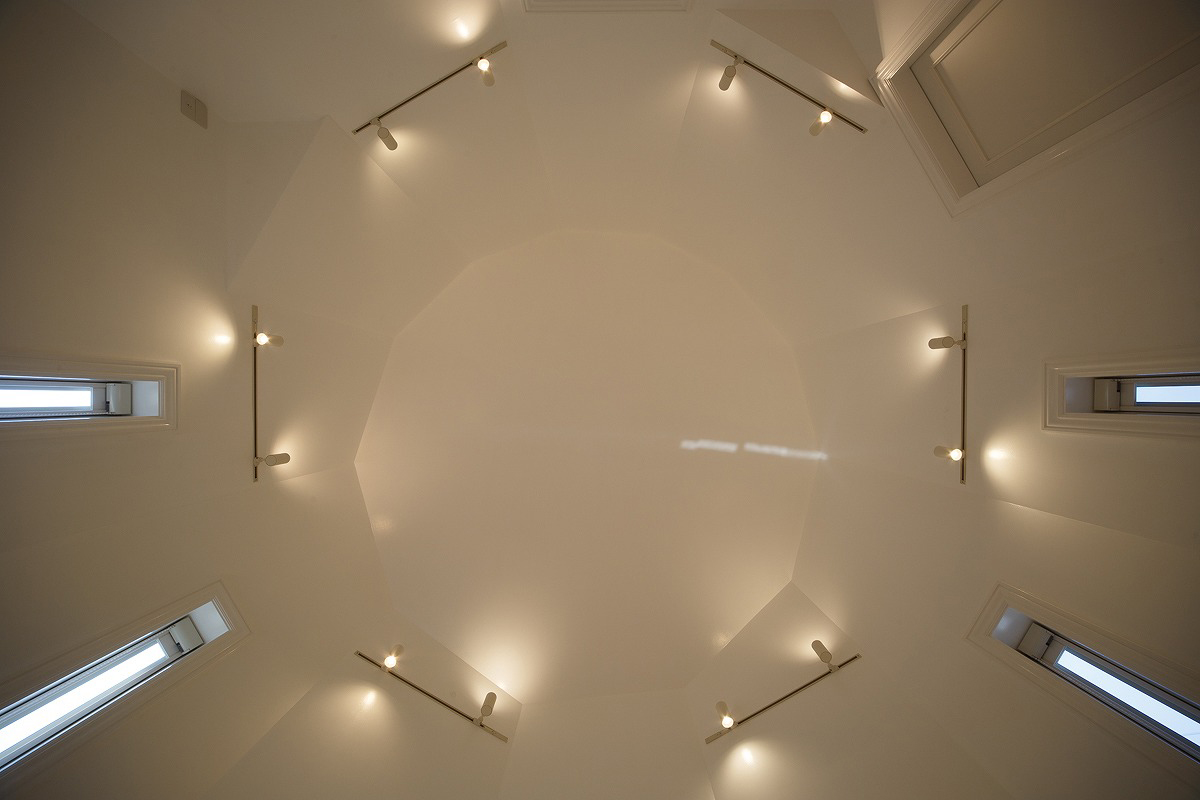 高さと角度を持たせた天井が音の響きをコントロールし、心地よい残響感を生み出します。