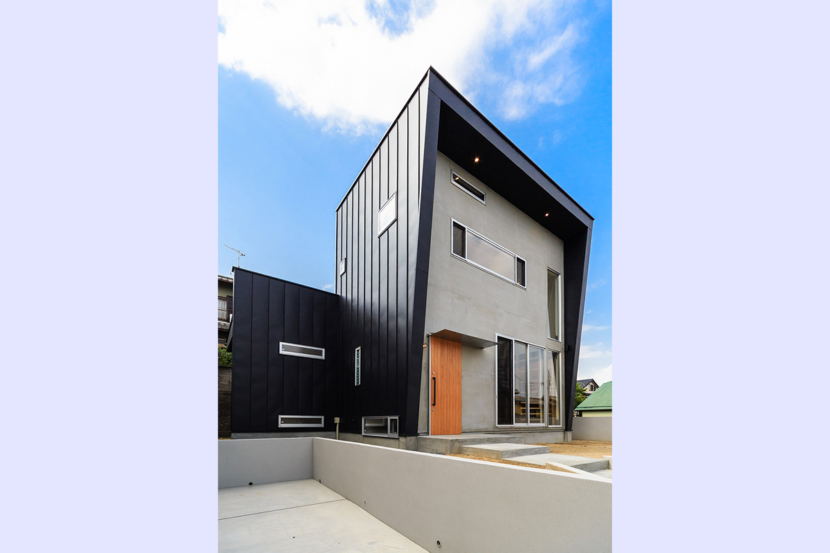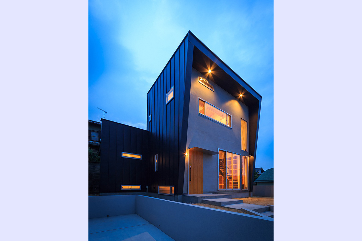 ガルバリウムの外観が印象的な、シンプルながらも存在感のある「Book」の家。