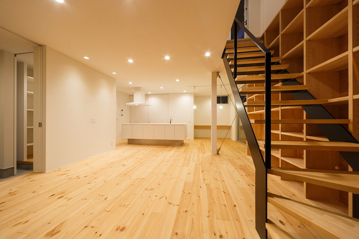 LDKの主役となる大容量の本棚。収納としてだけでなく、空間を彩る「見せるBookスペース」。
