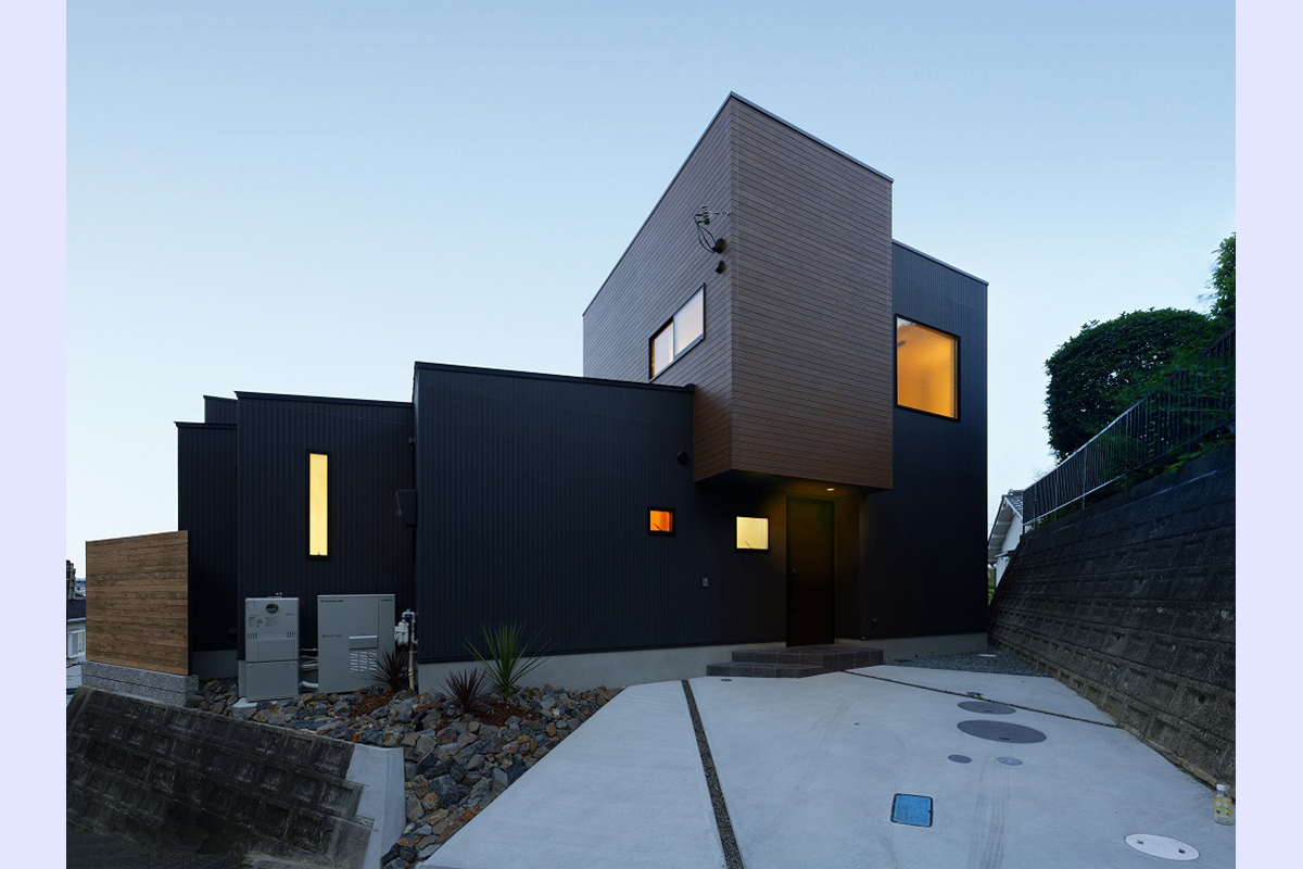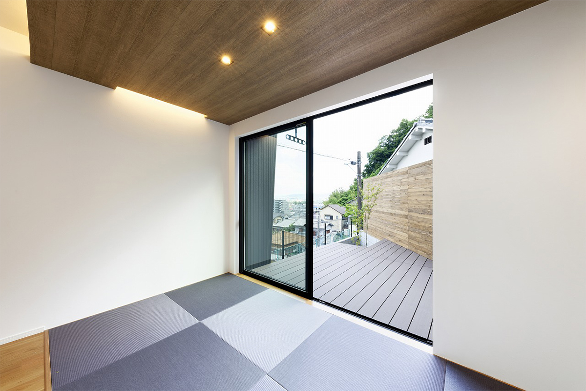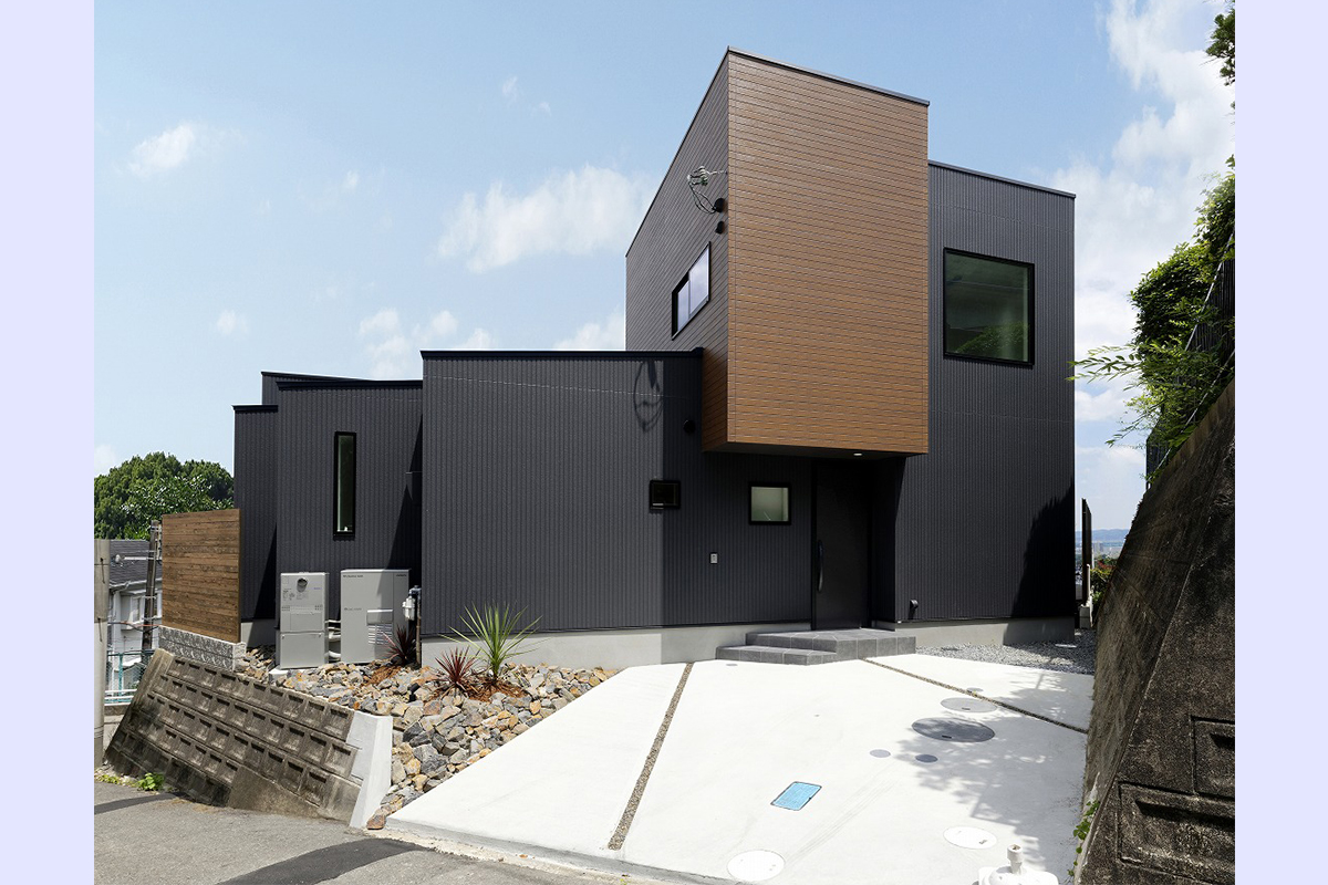 擁壁のある高台という立地条件を活かし、眺望とプライバシーの両立を目指して設計された住まい。