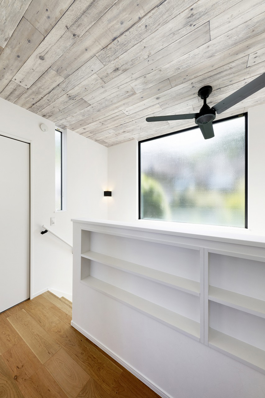 天井材の質感とやわらかな光が、家族の動線を包み込むような空間に。