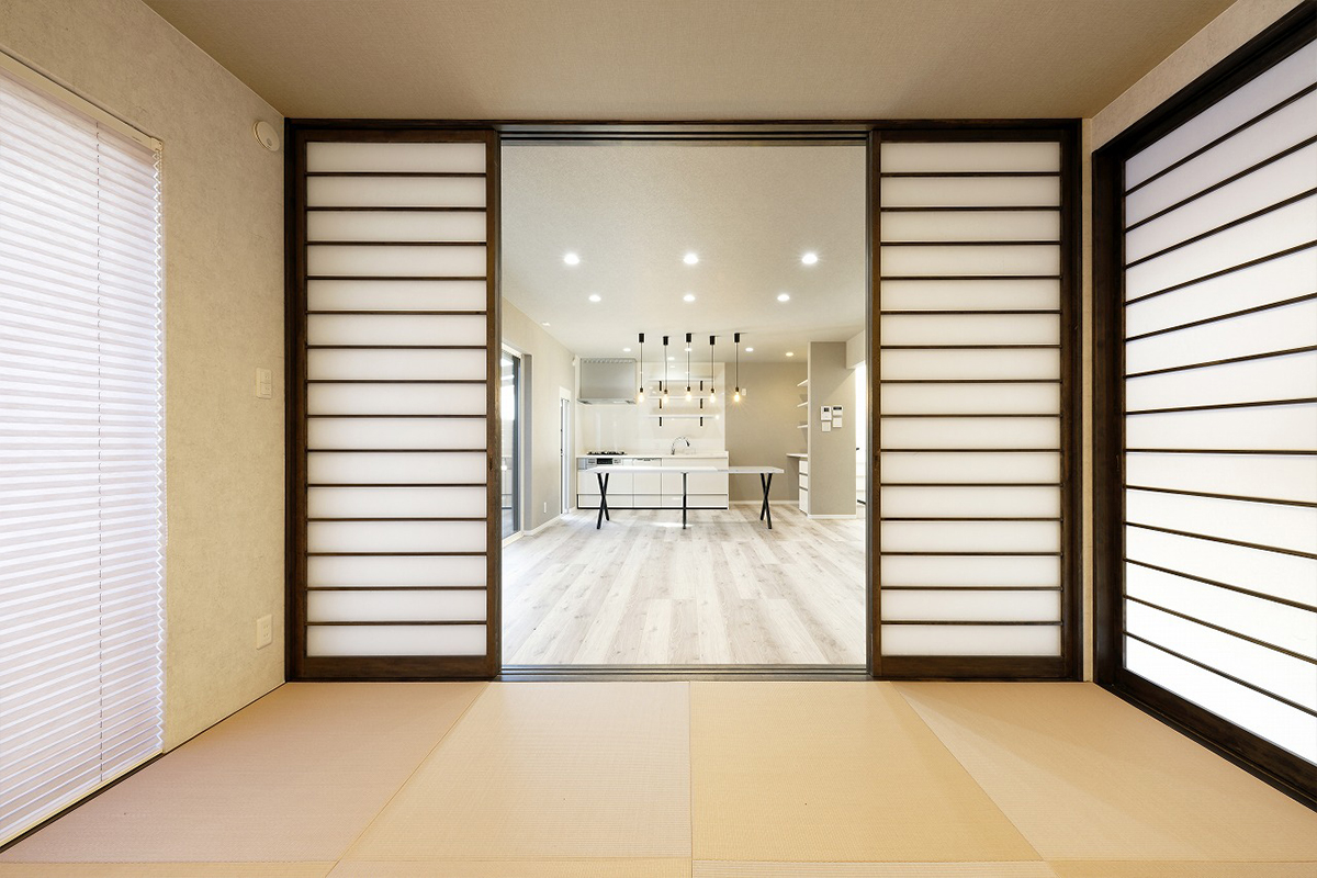 和室はリビングとつながりながらも独立性を保ち、家族の暮らしに寄り添う柔軟な間取りとなっています。