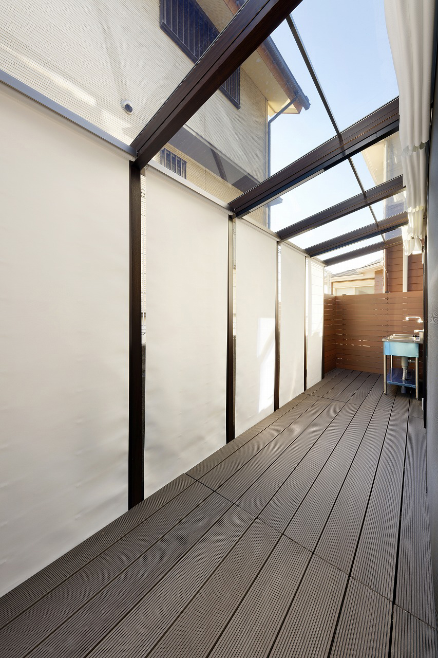 テラススペースには屋根と目隠しを設け、洗濯や家事がより快適に。