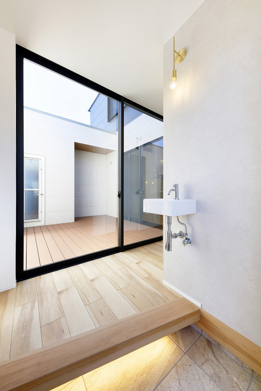 中庭を囲む家。女性が叶えたい収納・動線を満足させる家を創ると家族をいつも感じていられる。