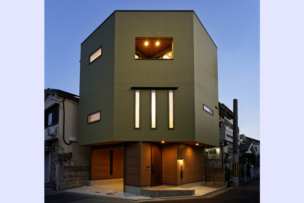 夜になると照明が外壁をやわらかく照らし、落ち着きのある雰囲気に。安心感のある帰宅動線を演出しています。
