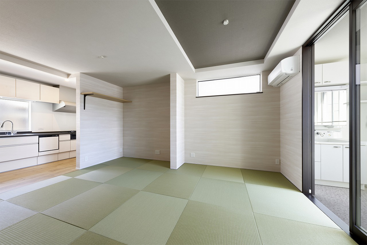 広々とした畳スペースは、くつろぎ・来客・多目的スペースとして活躍する家族の中心空間。