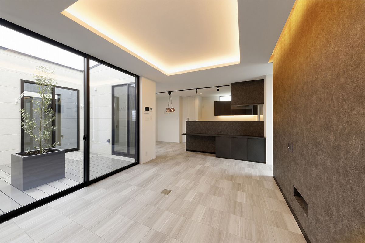 その内側に一歩踏み入れると、外からの視線を一切気にすることなく、家族だけの自由を享受できる「ロの字型の中庭」が広がります。