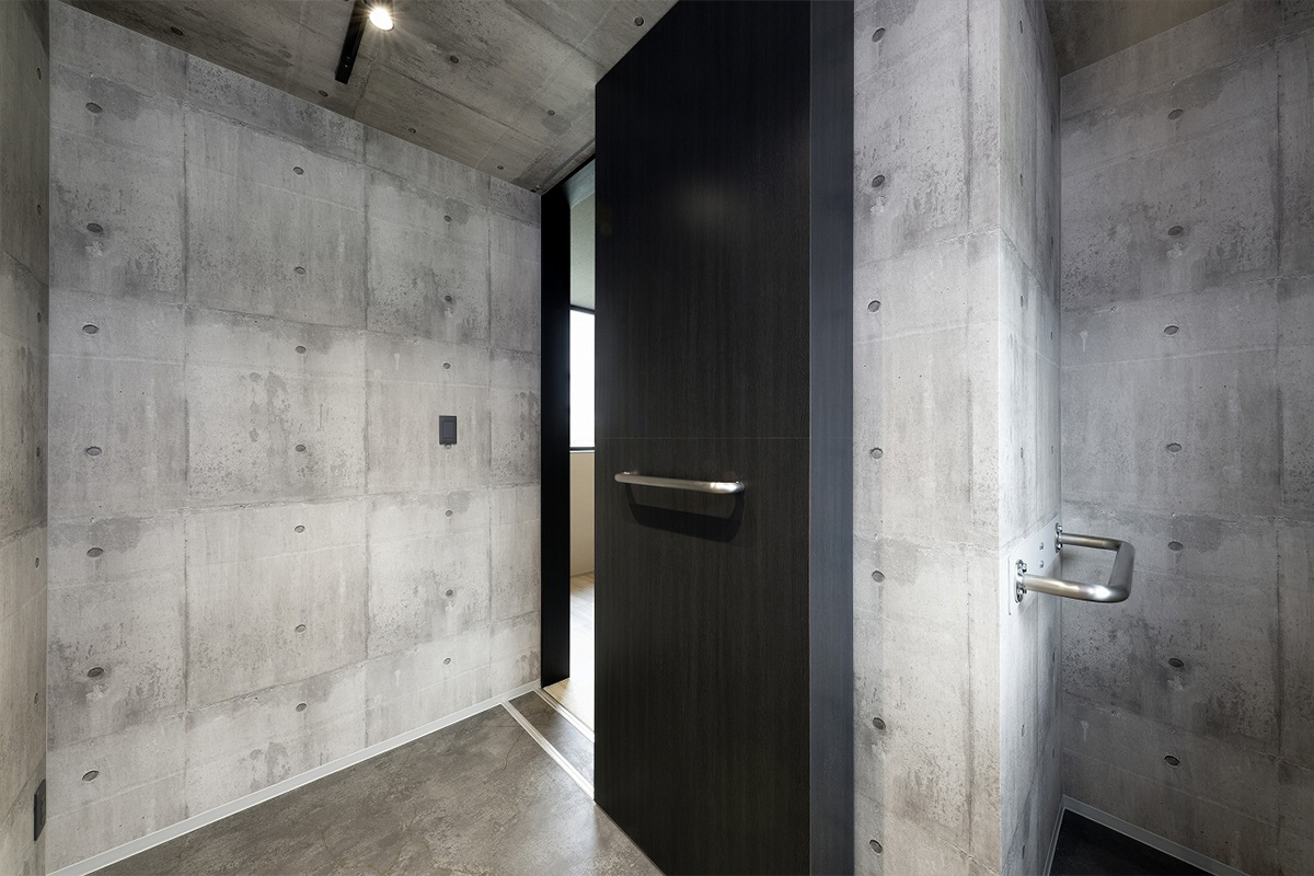 無機質でかっこいいガレージの一角に隠された、トレーニング室への入り口。