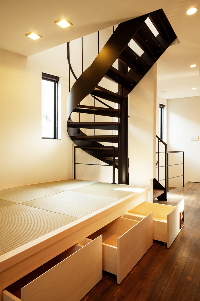 小上がり畳の下に収納を備えた、多用途に使える和のスペース。